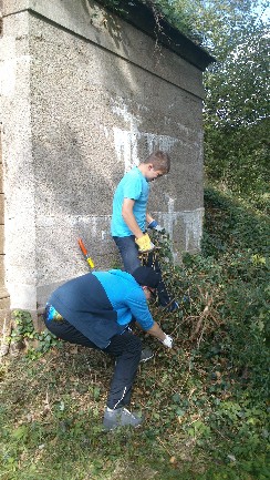 Die Schul-AG hat in mehreren AG-Stunden den stark überwucherten Urnentempel von Efeu befreit und ihn für eine baudenkmaliche Begutachtung vorbereitet. Die Auswertung hat ergeben, dass mit einem Sanierungsaufwand in Höhe von ca. 15.000 € dieses einmalige Baudenkmal (err. um 1913) vor weiterem Verfall gerettet werden kann. Die deutsche Stiftung Denkmalschutz hat einen Förderantrag Ende August von der Schul-AG erhalten; es wurden 10.000 € beantragt. 5.000 € will die AG durch Spenden einwerben. Der Förderverein unterstützt dieses Vorhaben ausdrücklich und hat sich bereit erklärt - wie bei anderen Projekten zuvor - die Spendengelder zu sammeln und die Finanzierung der Sanierung mit zu sichern. Untenstehend die Kontoverbindung unseres Vereins, wenn Sie mithelfen und spenden möchten !!